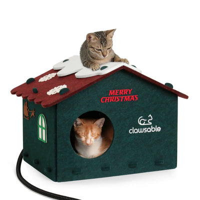 Double-Layer Constant-Temp Heated Felt Cat Bed Castle